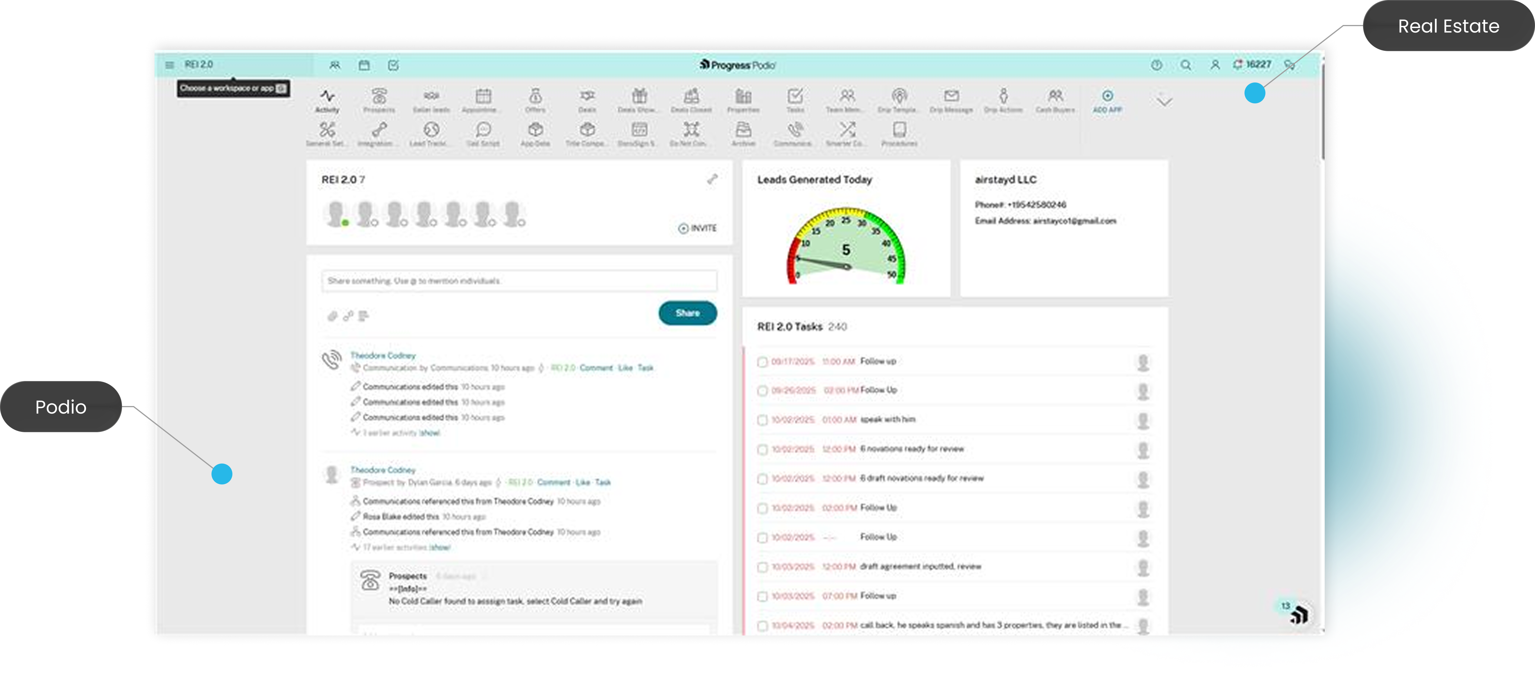 Built specifically for real estate teams who rely on Podio, this system keeps everything in one place. From managing leads to tracking deals and handling follow-ups, it’s designed to cut down on manual work and give teams more time to focus on closing.